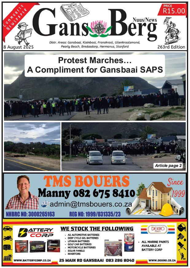 Home 2025 GANS-BERG NEWSPAPER – 8 AUGUST 2025 2025Newsletters GANS-BERG NEWSPAPER – 8 AUGUST 2025 August 7, 2025 151 0 Facebook Twitter Pinterest WhatsApp Browse our latest newspaper online. Click on the image below on this Gans-Berg News 8 August 2025