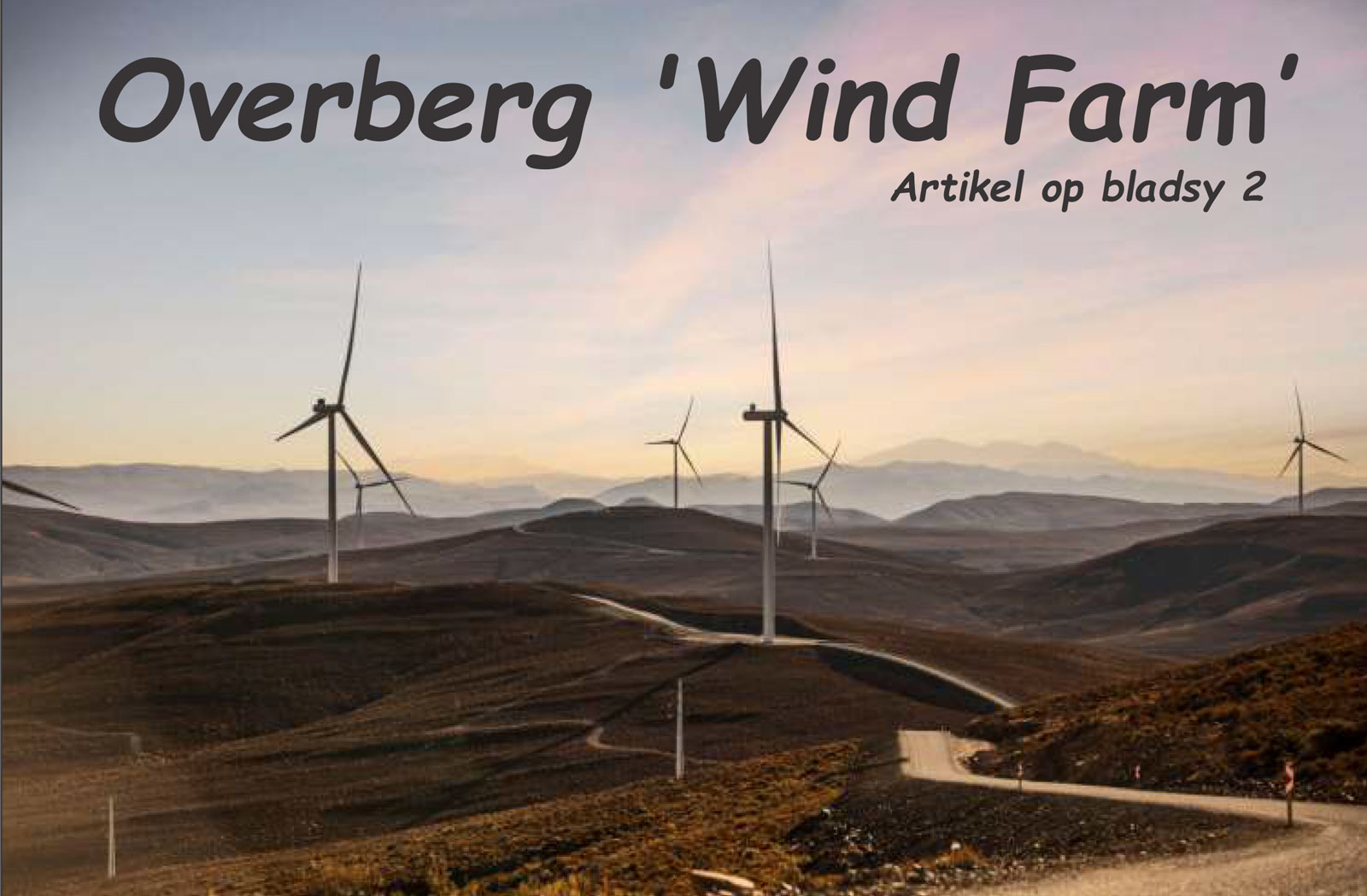 With reference to Carina Badenhorst’s article on the Overberg Wind Farm in this edition, the Gans-Berg News took a closer look at remarks published on the project’s website. Hardus Botha.